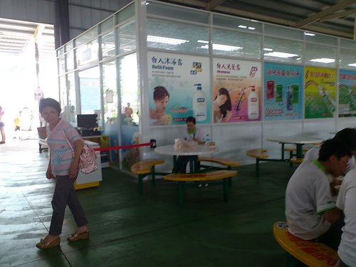 該工廠主要接待遊覽車,如果是散客的話,先到服務台報到(他會分商品折價卷)。