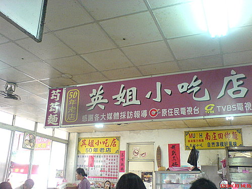 聽貓的建議,我們先到南庄市場的英姐小吃店吃芶芶麵~